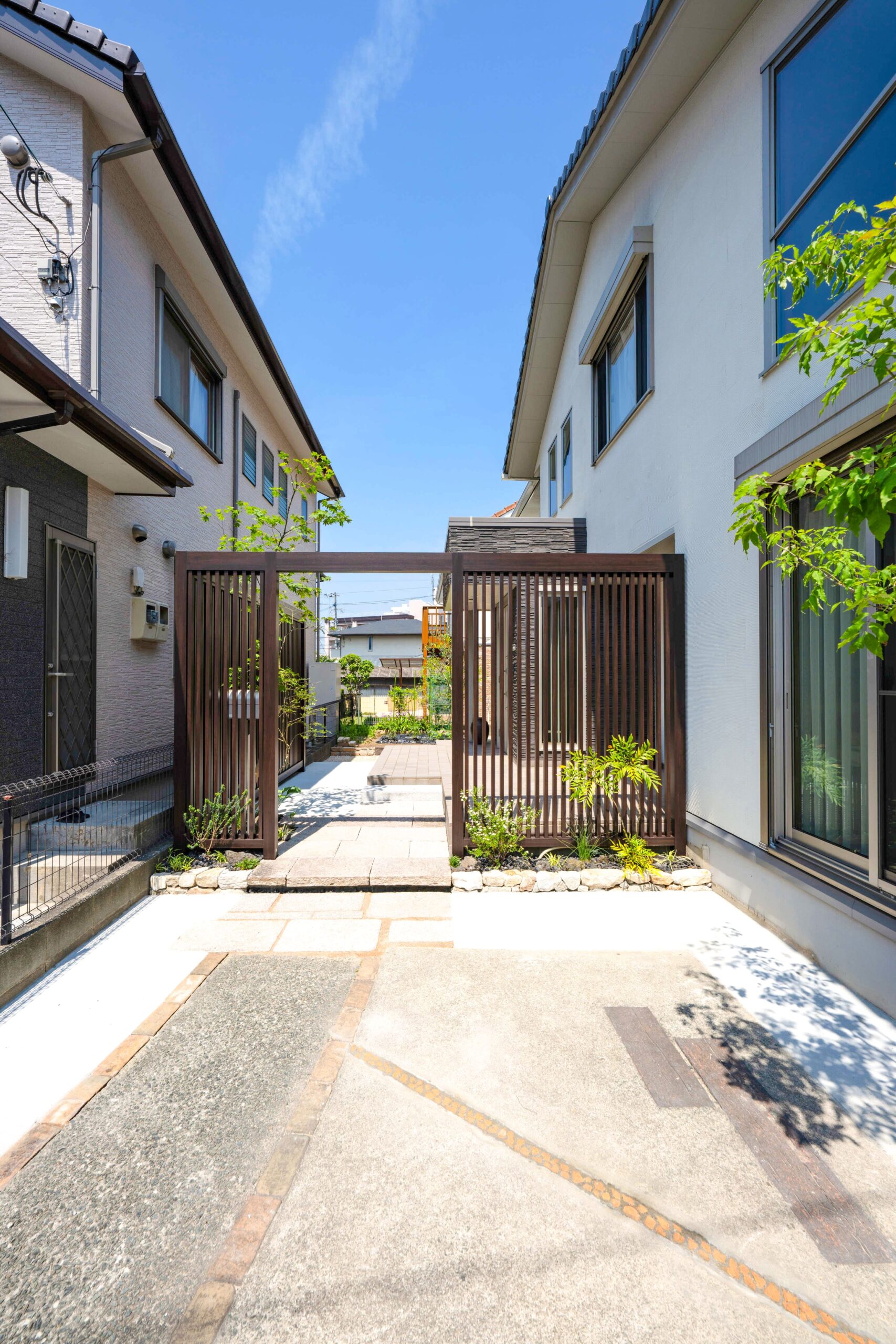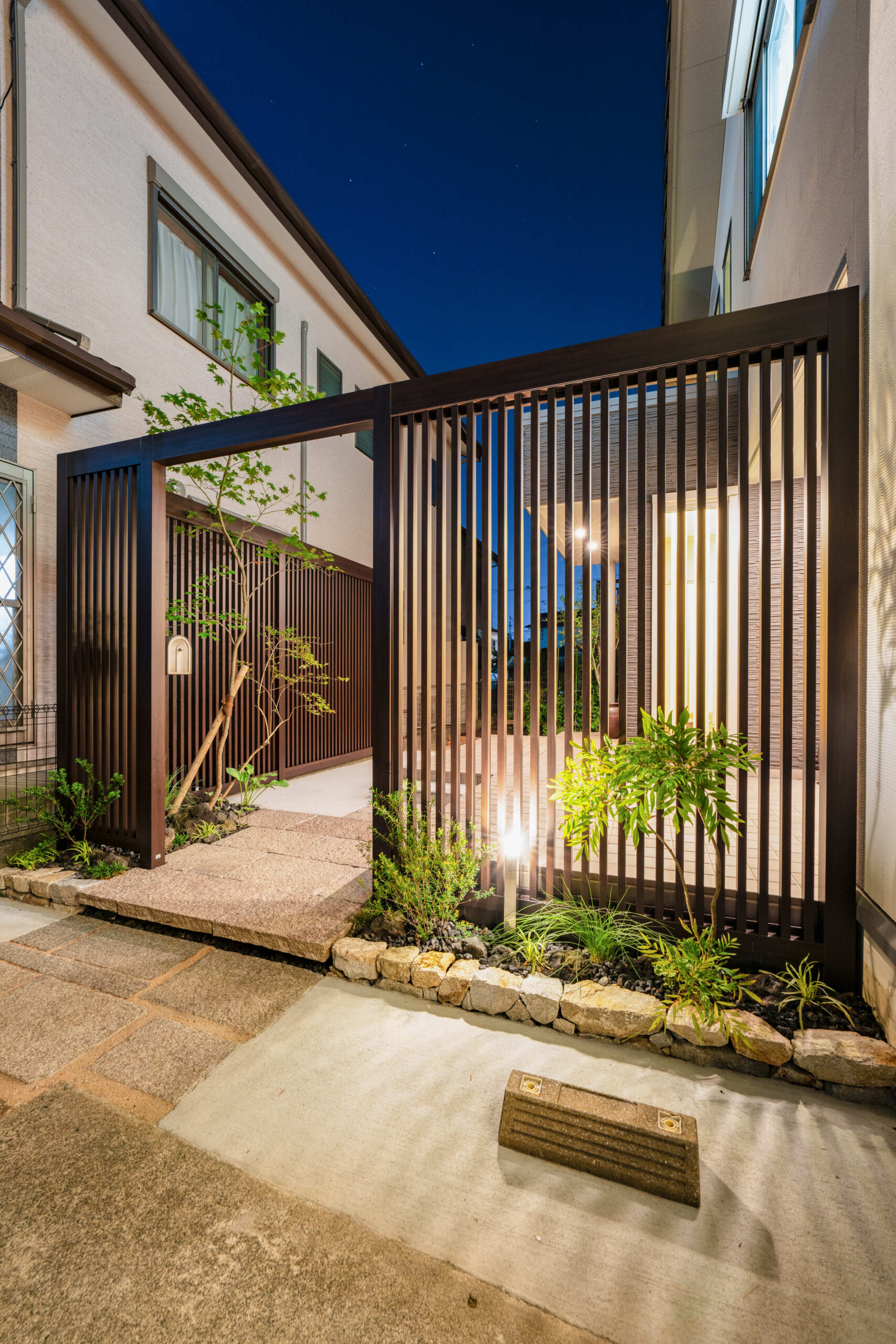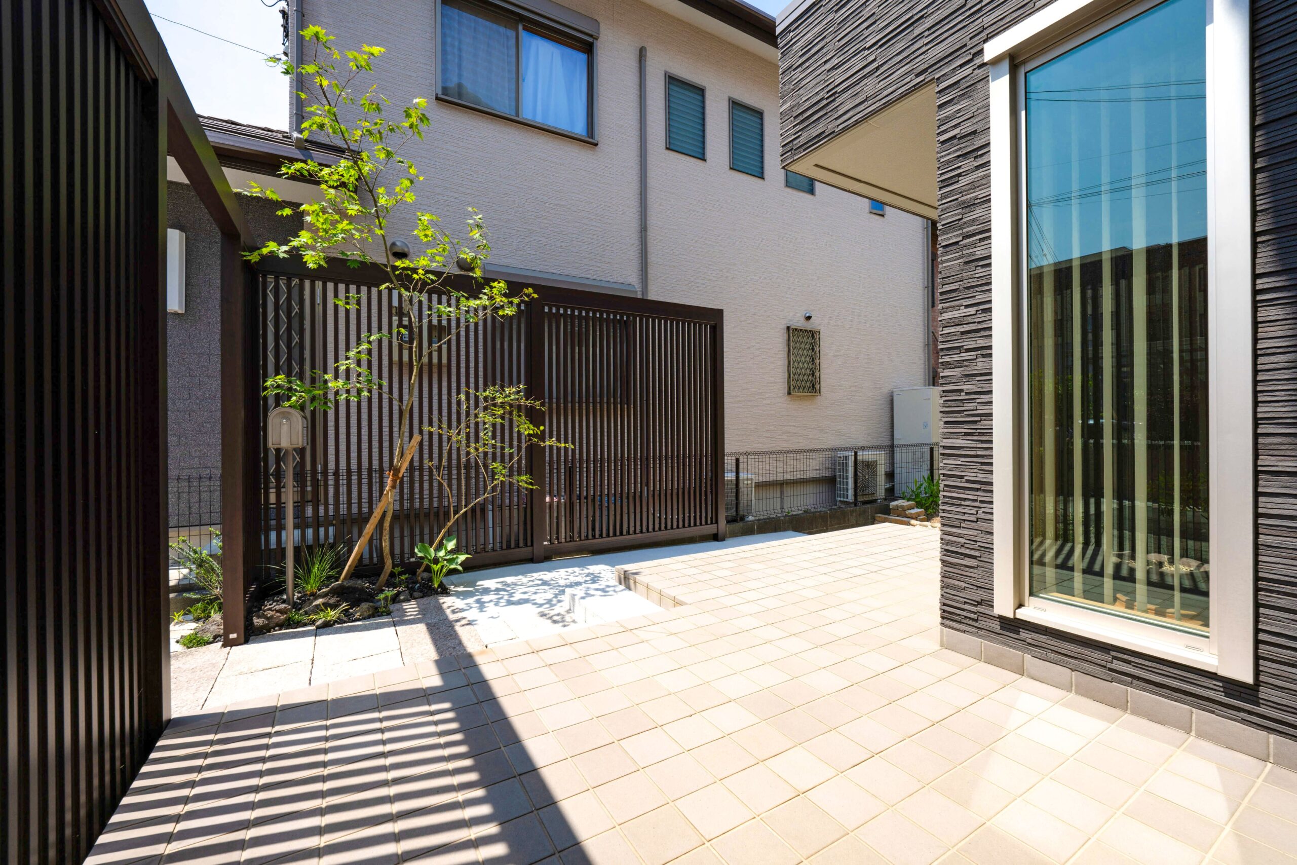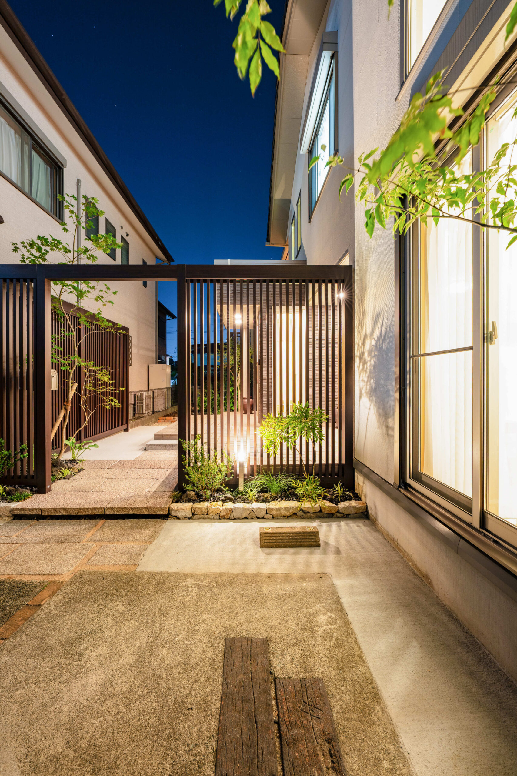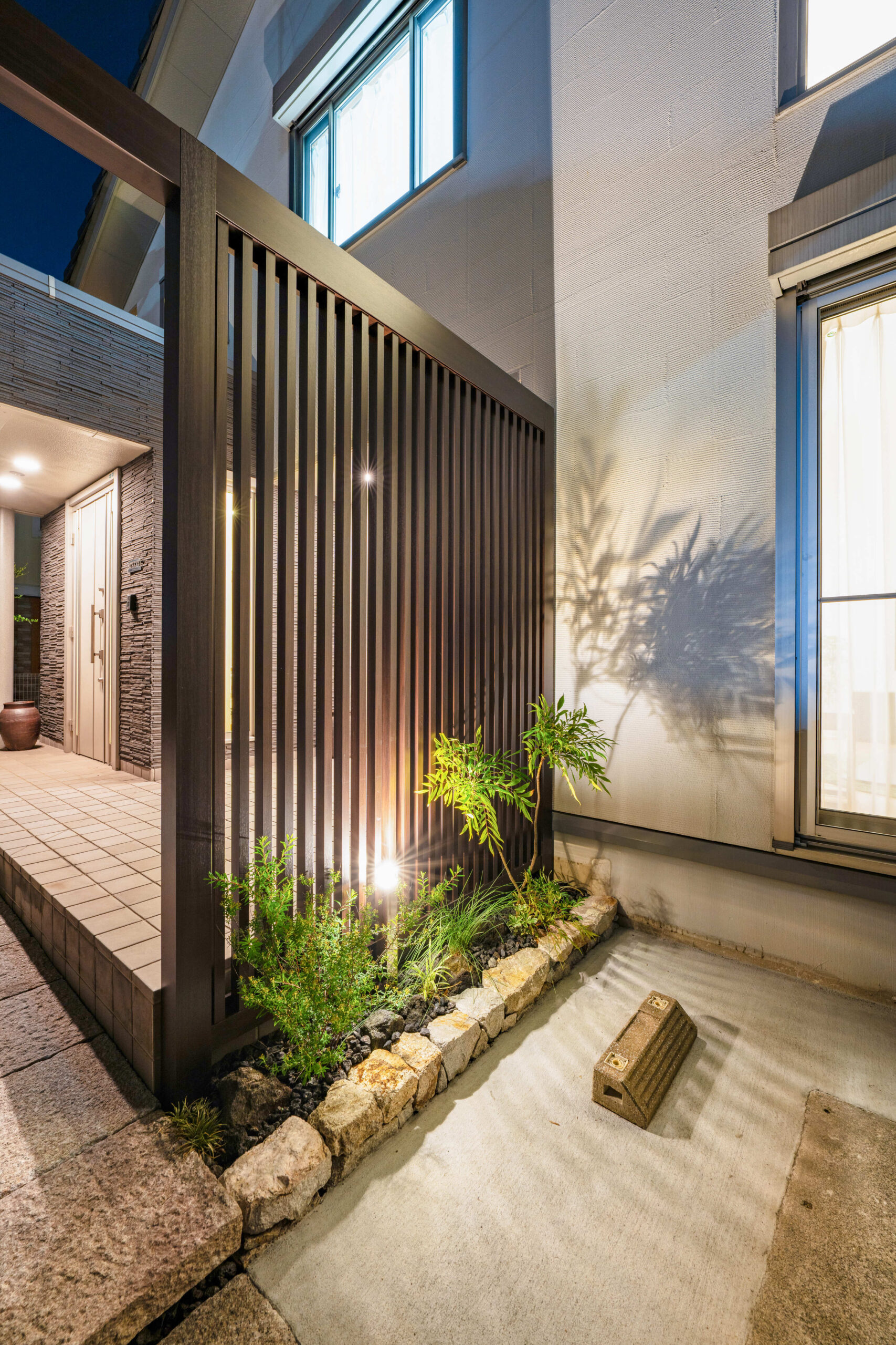リフォームをご依頼いただき、なるべく現状ある素材を再利用できたらとの要望。 アプローチに使用の御影石は、元々裏の勝手口やアプローチ使ってあり、一部足りない箇所は、古い商品を現状に合わせるように加工。土留めの花壇や石積に関しては、地元の石を使いなるべく自然な色味に揃えながら石積を行いました。