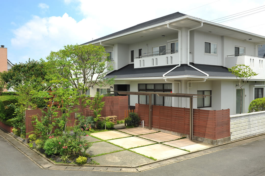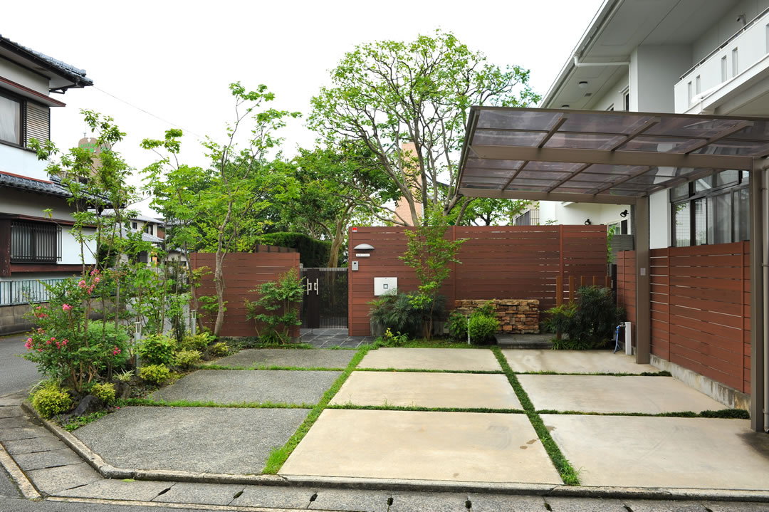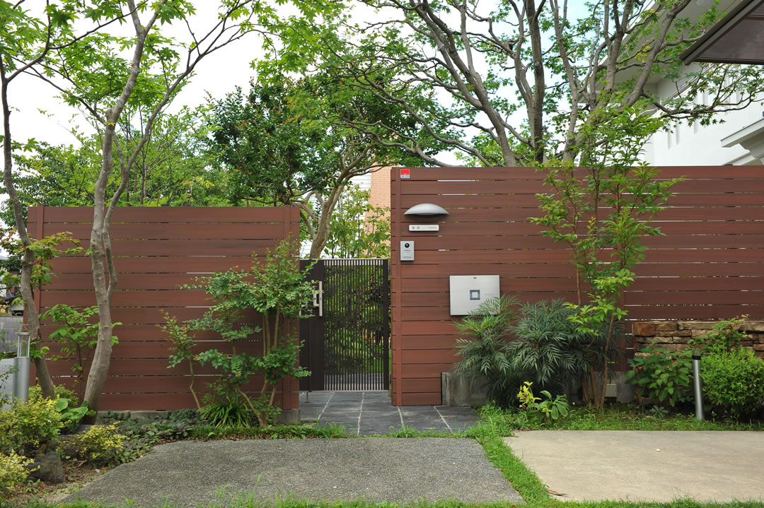 「豊かな緑」をテーマにしています。多種多様な植栽を使っているので、木調のフェンス等もバランスを取ってくれるアイテムを使用しています。